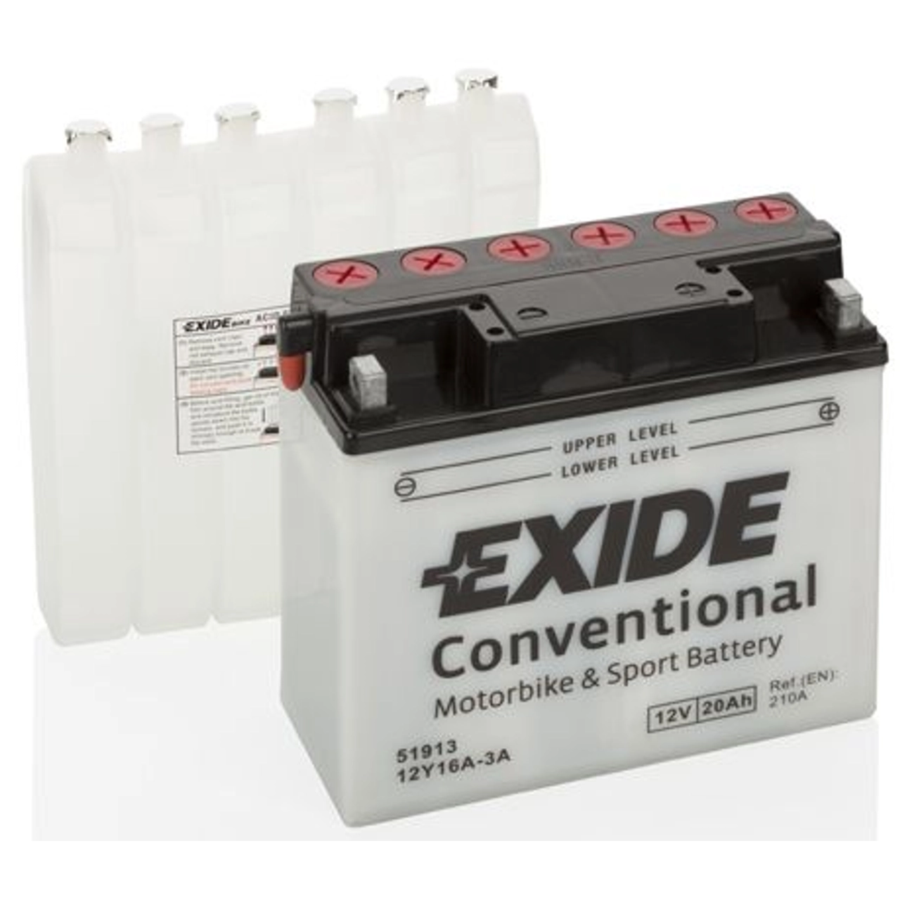 A EXIDE dispõe de uma vasta gama de baterias de moto, incluindo as CONVENCIONAL, oferecendo confiabilidade e vida útil prolongada. Estas baterias vêm por formar, o que requer o nosso enchimento e carga afim de não comprometermos a vida útil da bateria.