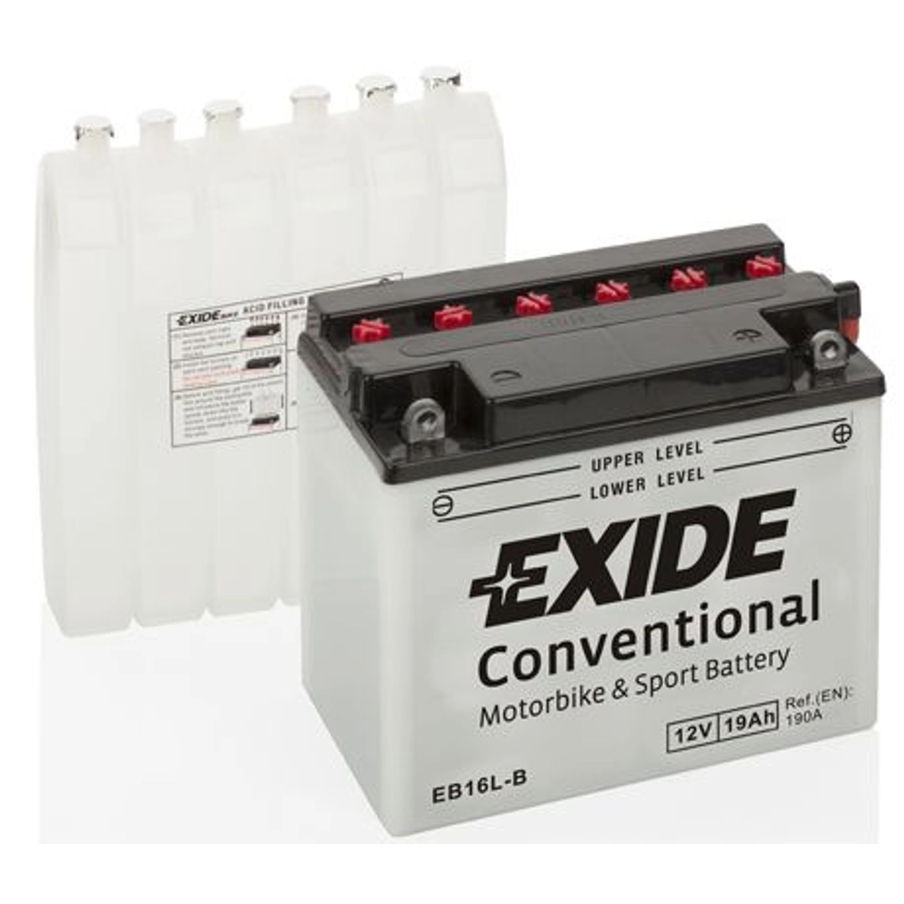 A EXIDE dispõe de uma vasta gama de baterias de moto, incluindo as CONVENCIONAL, oferecendo confiabilidade e vida útil prolongada. Estas baterias vêm por formar, o que requer o nosso enchimento e carga afim de não comprometermos a vida útil da bateria.