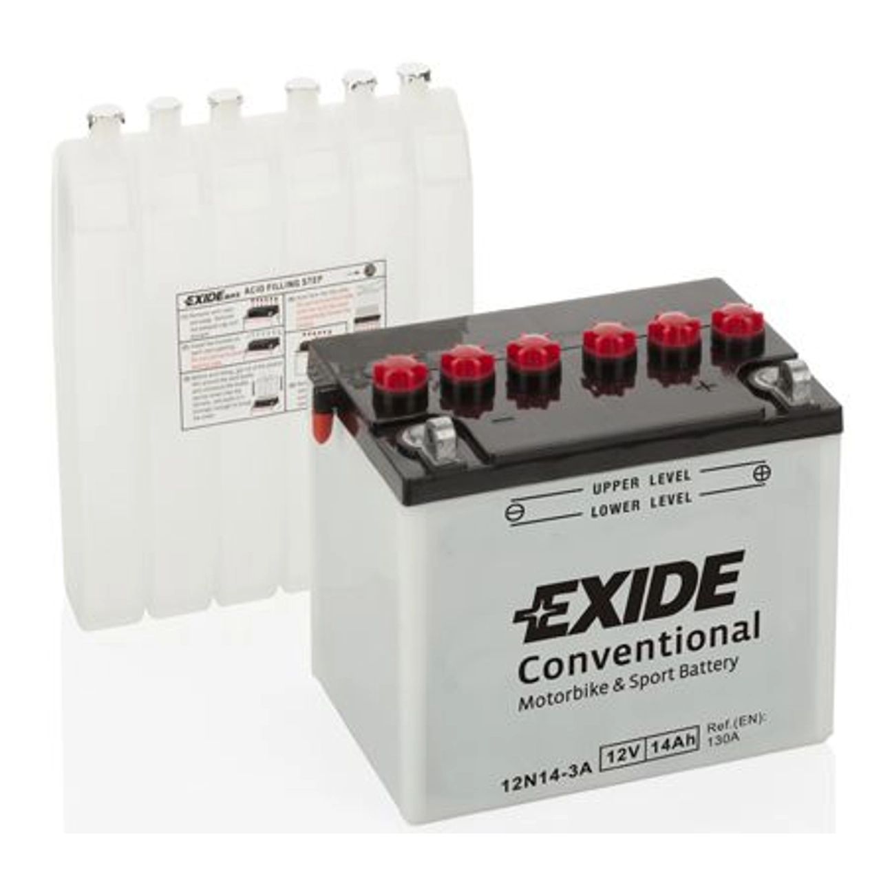 A EXIDE dispõe de uma vasta gama de baterias de moto, incluindo as CONVENCIONAL, oferecendo confiabilidade e vida útil prolongada. Estas baterias vêm por formar, o que requer o nosso enchimento e carga afim de não comprometermos a vida útil da bateria.