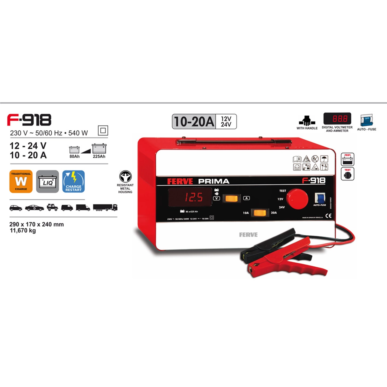 Os carregadores PRIMA estão concebidos para satisfazer as necessidades do usuário profissional. Este carregador apenas carrega baterias convencionais. Não é indicado para baterias AGM / GEL / EFB.