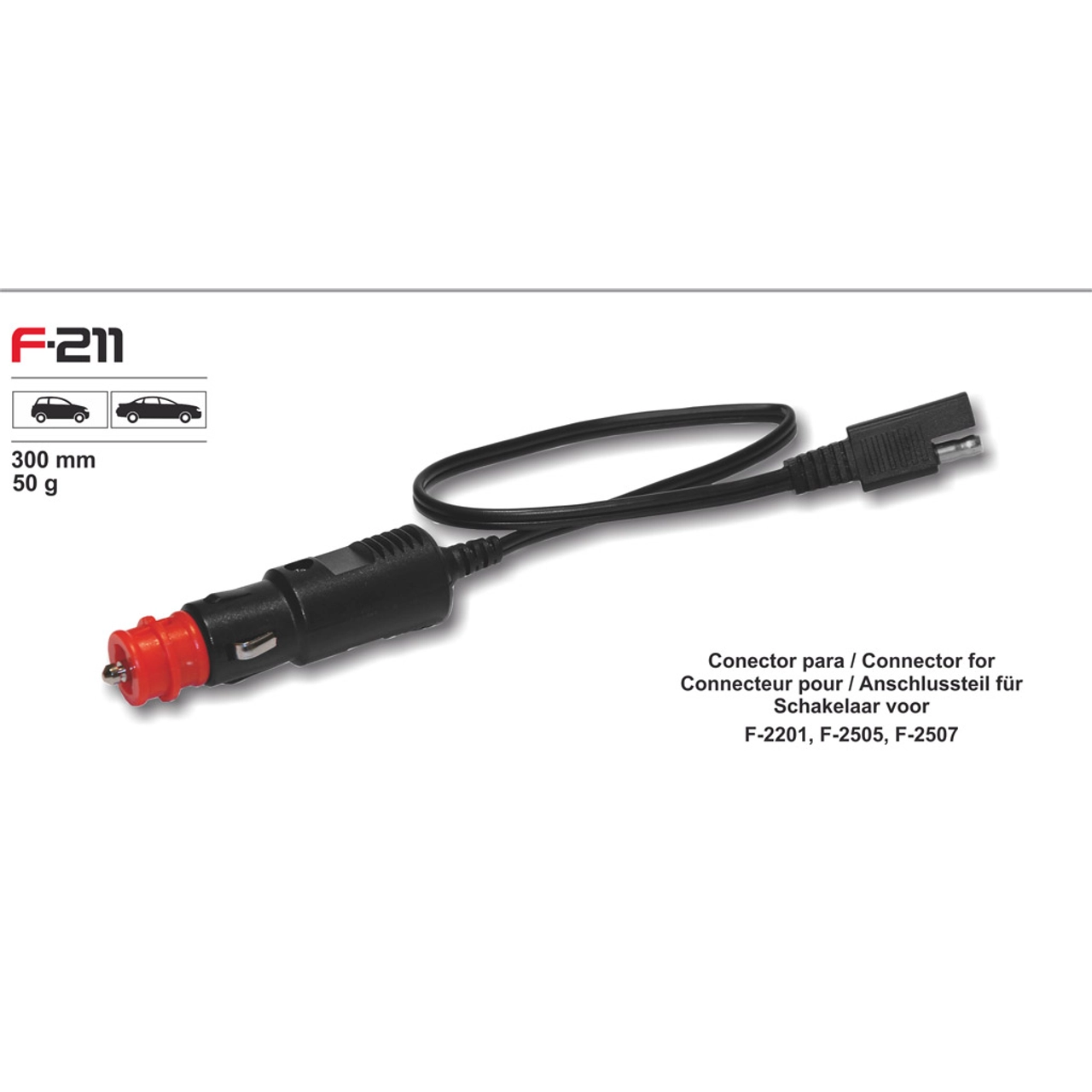 O presente adaptador tem como função a interligação entre os carregadores FERVE F-2201 / F-2505 / F-2507 ao seu veículo via isqueiro.