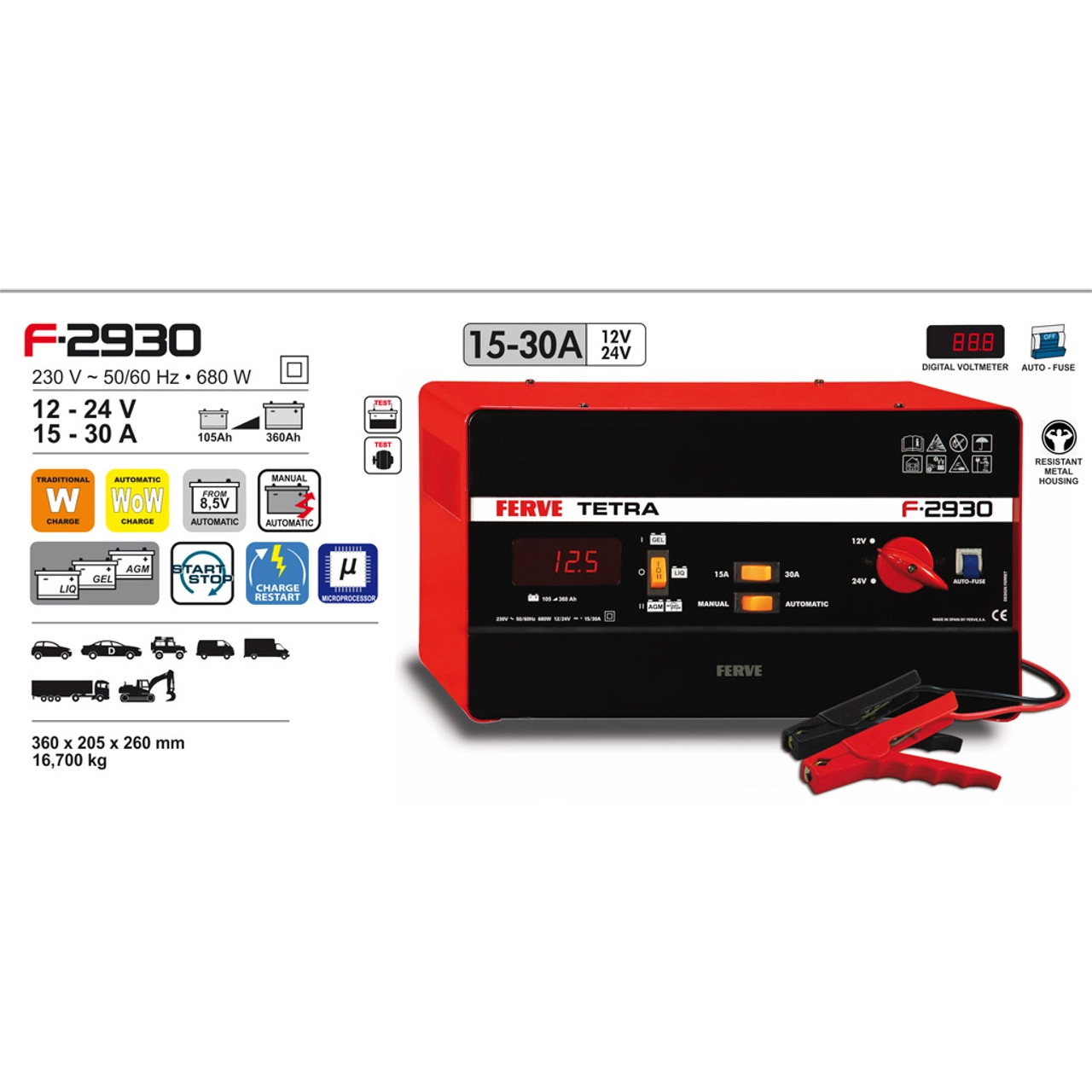 Os carregadores da gama TETRA adaptam-se a qualquer tipo de bateria, podendo o utilizador seleccionar a carga manual ou automática. Os modelos F-2914 / F-2916 / F-2920 dispõem da função RF "Ripple Free", que permite carregar a bateria sem a mesma ser desligada do veículo, eliminando assim a componente alterna e os picos de tensão.