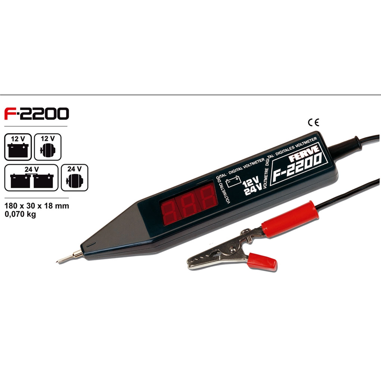O voltímetro da FERVE F-2200 é um aparelho simples em que consegue medir a tensão da bateria bem como o teste de carga do alternador.