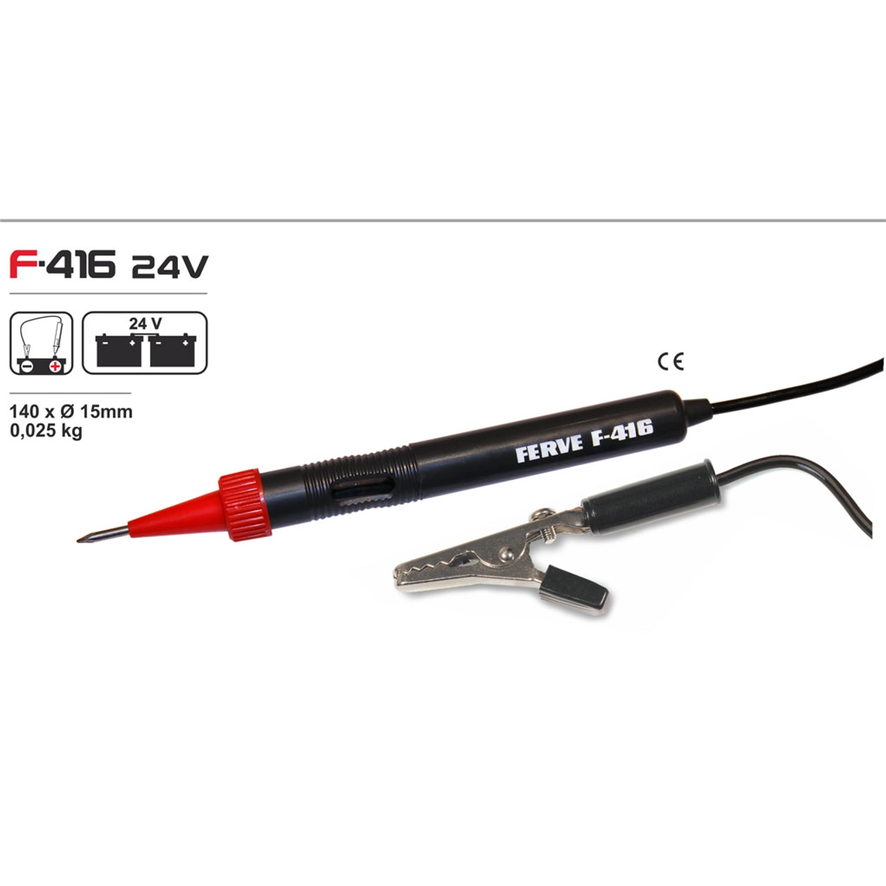 A ponta de prova da FERVE F-416 é o ideal para verificação de tensão em 24V.