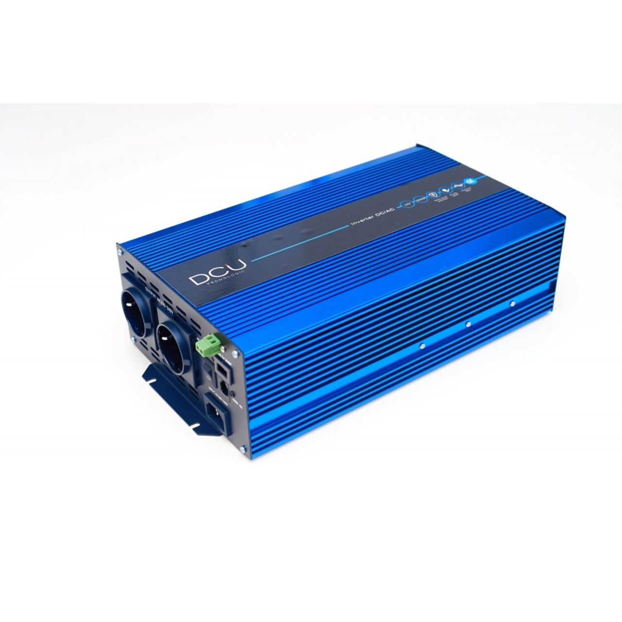 Os inversores Pure Sine Wave DCU geram uma onda senoidal perfeita com frequência de 50Hz e são projetados para alimentar equipamentos que requerem uma modalidade de energia igual à fornecida pela rede, como impressoras, dispositivos de navegação, máquinas de café, fontes de alimentação de emergência. Contém 1 saída USB, 2 tomadas e cabo de alimentação, alarme e protecção de bateria fraca como também protecção contra sobretensão e sobrecarga. A sua potência de pico é de 3000W.